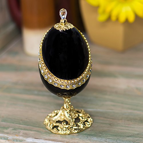Black and Gold Faberge Musical Egg with Swarovski Crystal Accents Plays Canon