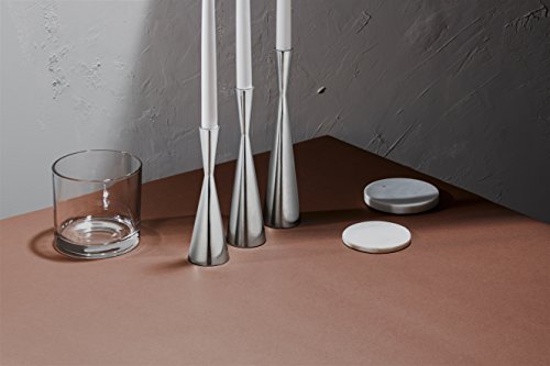 Featuring a slender, graceful silhouette and lustrous silver finish, the Eero Holders offer a contemporary take on classic, modernist Danish design. Place this small candleholder on a mantle or shelf for a chic, decorative element or assemble with our other Euro Holders of various sizes and colors for a dynamic tableau. Pairs with our Vigil flameless taper candles for worry-free ambiance. Specifications: - Material: Metal