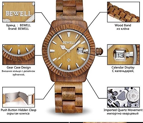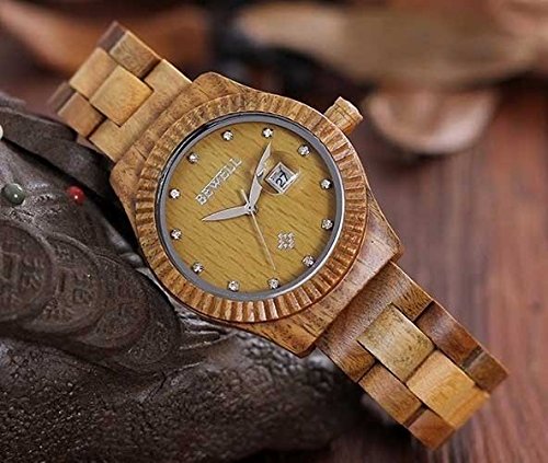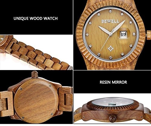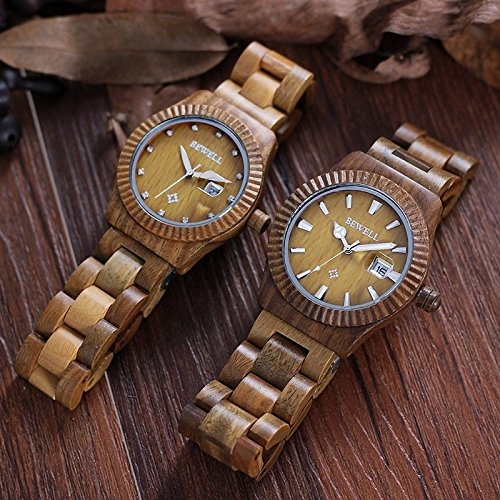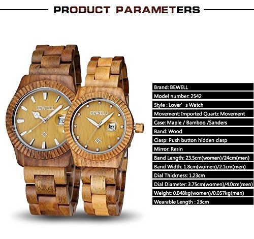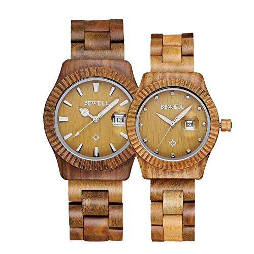 -. Title : Bewell Auto Date Men Women Fashion Retro Wooden Quartz Couple Watches for Him and Her Lovers' Watches