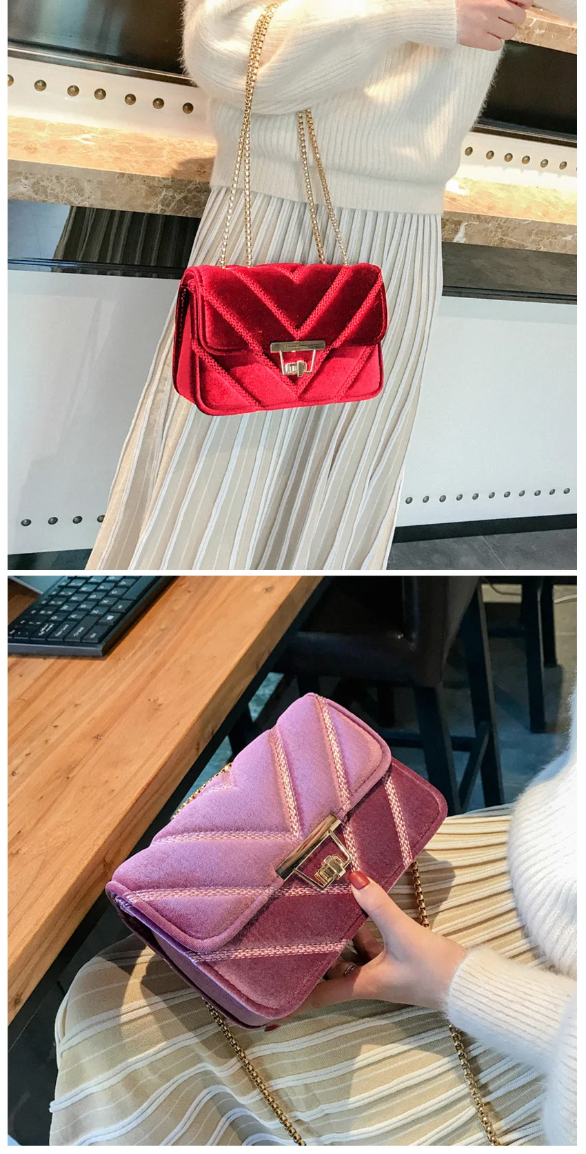 Feature 3:V shape Diamund Lattice bag