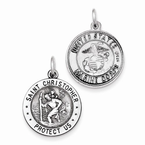-. Title : Sterling SIlver St. Christopher Reversible US Marine Corp Medal
