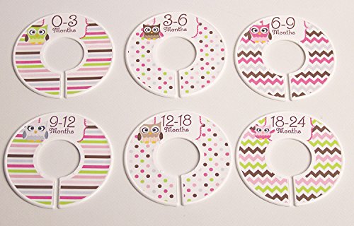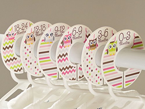 Closet Doodles C195 Owl Girl Baby Closet Dividers Set of 6 Fits 1.25inch Rod