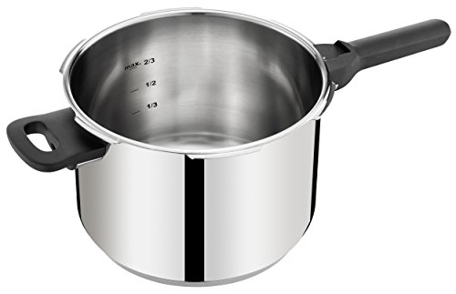 -. Feature : 3-teiliges Schnellkochtopf aus hochwertigem Edelstahl (10 Jahre Garantie auf den Edelstahl-Topf) mit patentiertem Secure 5 Sicherheitssystem / mit 2-Stufen-Garregler: Intensivstufe (117°C, für bspw. Fleisch und Fisch); Schonstufe (112°C, für bspw. Gemüse, Reis, Kartoffeln) / starker Induktionsboden für gleichmäßie Hitzeverteilung / ein langer Griff für komfortables Öffnen und Schließen, automatisches Schließsystem / kurzer Gegengriff zum sicheren Transport / geeignet für alle Herdarten, auch Induktion / Spülmaschinengeeignet (außer Deckel)
