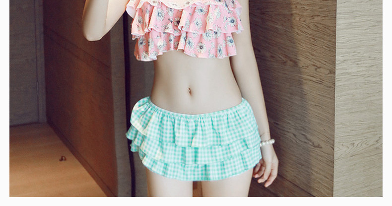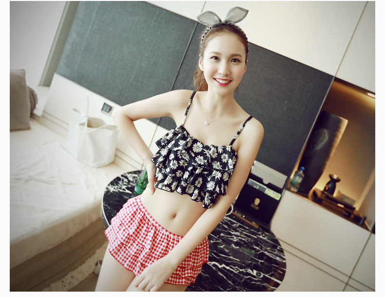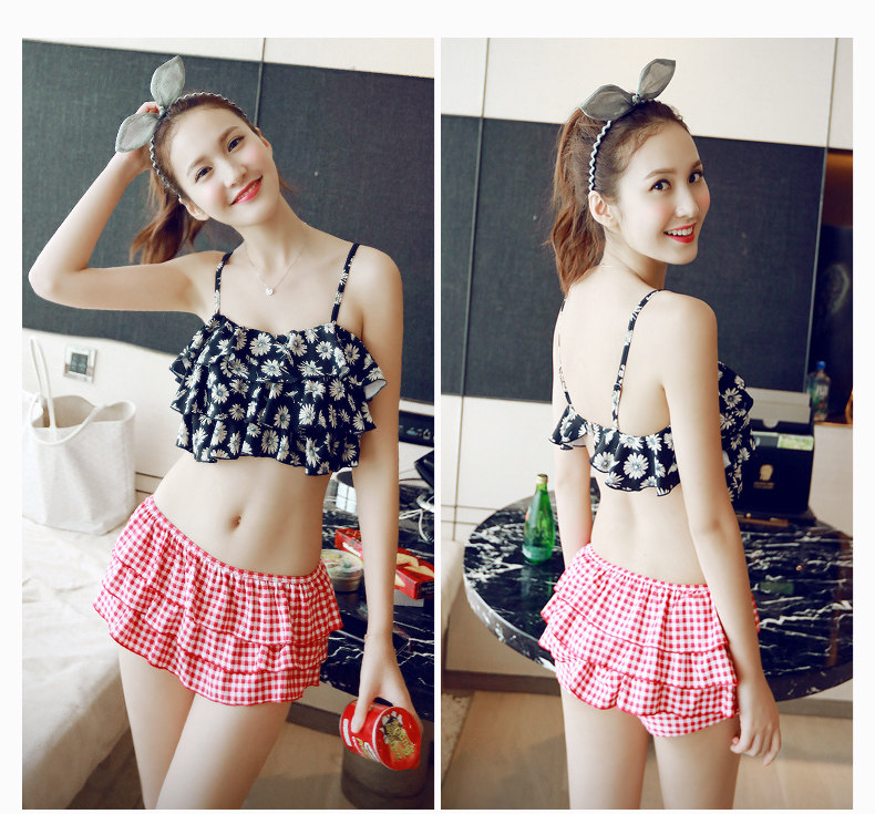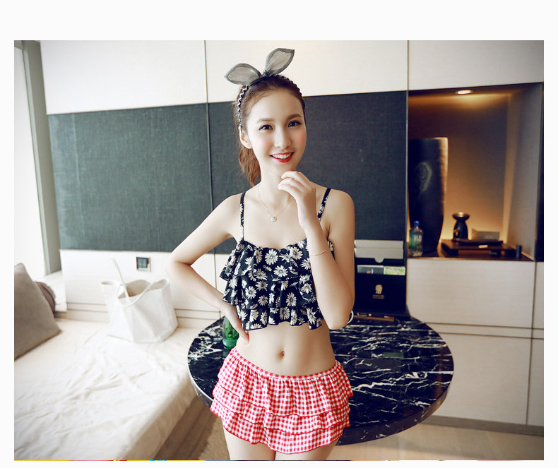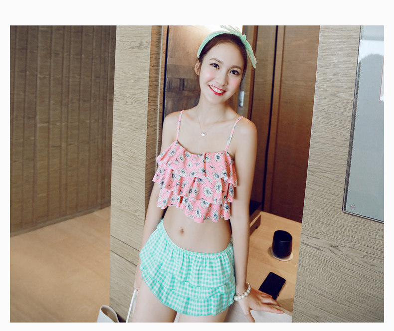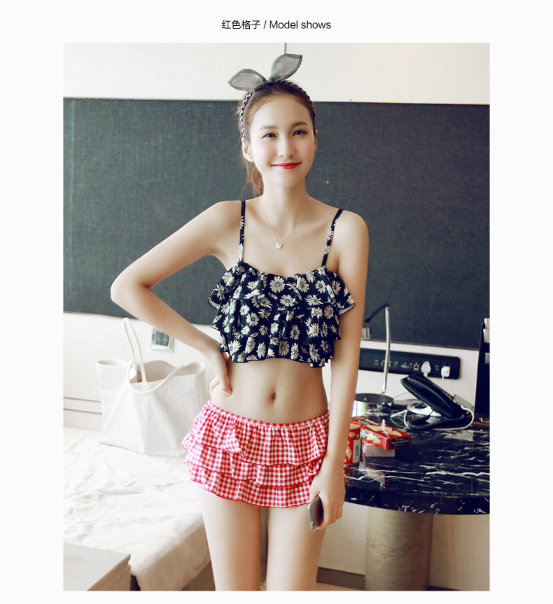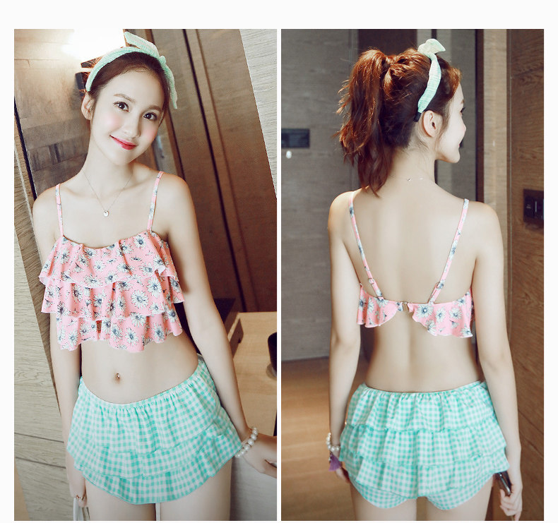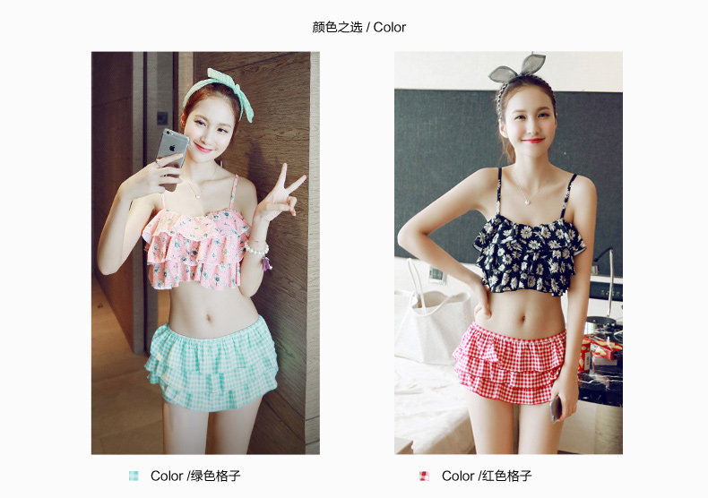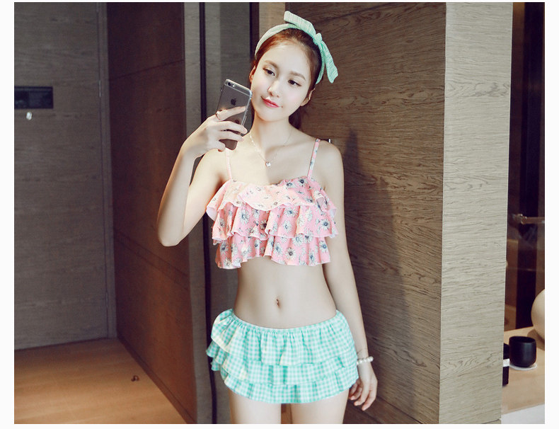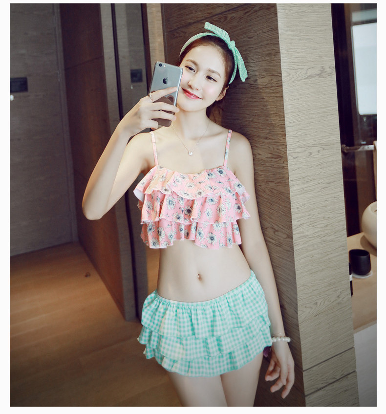 甜美性感小胸聚拢保守显瘦裙式分体两件套温泉游泳衣