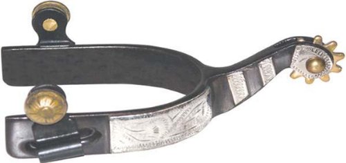 Product DescriptionThis show spur features a 3/4" Blued steel band with silver overlay, 1 3/4" Raised shank, and a 7/8" brass 10 point rowel.0