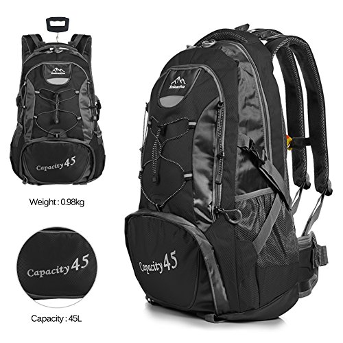 -. Brand : TTWO -. Feature : DURABLE: This Hiking Backpack is made of high quality Oxford cloth. Lightweight & waterproof. The backpack's stress points are reinforced with bar-tacks for enhanced longevity. Max weight capacity is 44lbs. There are durable abrasion resistant SBS metal zippers. / COMFORTABLE: Breathable mesh shoulder straps with plentiful sponge padding help relieve the stress from your shoulder. The length of the shoulder straps is adjustable. The chest strap with a whistle buckle help you lock your backpack in place securely. / Large Capacity&Perfect for All Occasions: 45 Liter. Plenty of small & large pockets, large enough to carry your hammock, clothes, towel, tent, trekking poles, sleeping bag and so on. Great idea for hiking, outdoor travel and daily use. This backpack can fit all your hiking & travel essentials! Great gift for you. / Ergonomic Design: Fit body back carrying system structure, effective dispersion pressure, bring very comfortable feeling, three-dimensional strip designed to rapidly dissipate heat, and keep your back cool and dry. / Warranty: We offer 12-month manufacturer guarantee. If you are not fully satisfied with our hiking backpack, just return it and we will give a full refund to you. Any questions about our products, welcome to contact us and we will help you solve it within 24 hours. -. Label : TTWO -. Manufacturer : TTWO -. MPN : Hiking Backpack -. PartNumber : Hiking Backpack -. ProductGroup : Sports -. ProductTypeName : OUTDOOR_RECREATION_PRODUCT -. Publisher : TTWO -. Studio : TTWO -. Title : TTWO Hiking Backpack, Outdoor Sports Series 45L Lightweight Packable Mountaineering Daypack for Camping Traveling Climbing