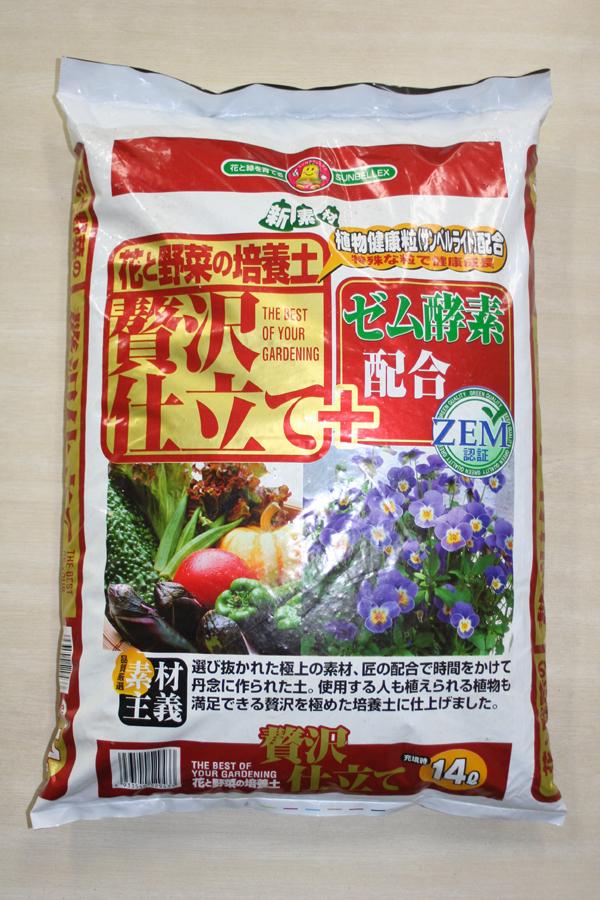 | 極上堆肥・極上赤玉土・極上鹿沼土を中心に贅沢な素材を贅沢に配合しました。肥料成分がバランス良く含まれており、長期間肥料が効き続ける贅沢な培養土です。酸度・肥料成分調整済み。植物に有害な産廃堆肥・汚泥などは一切使用しておりません。使用する人も植えられる植物も満足できる贅沢を極めた培養土です。 |