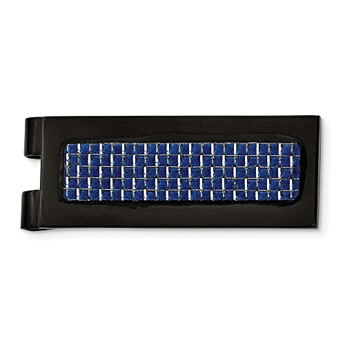 (GLDQ001)/Accessories/Wallets, Money Key Organizers/DIRECT FROM USA/Stainless Steel Polished Black IP w/Blue Carbon Fiber Inlay Money Clip