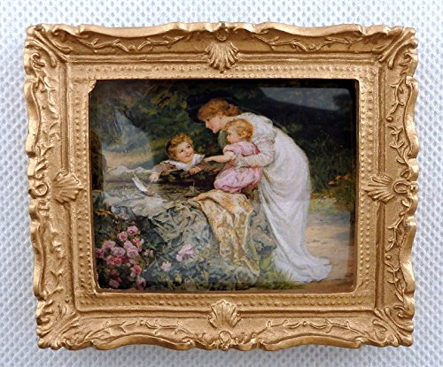 -. Title : Melody Jane Dolls House Time with Mother Picture Painting Gold Frame Miniature Accessory