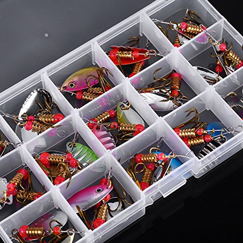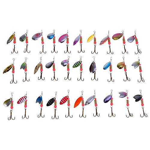 -. Title : 30Pcs Fishing Lures Metal Spinner Bait Tackle Treble Hook Set Freshwater Saltwater Fishing Supplies