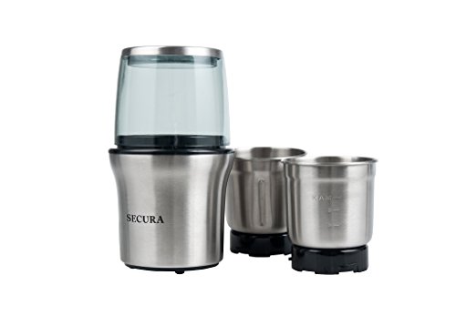 SECURA ELECTRIC COFFEE GRINDER & SPICE GRINDER WITH 2 STAINLESS-STEEL BLADES REMOVABLE BOWL