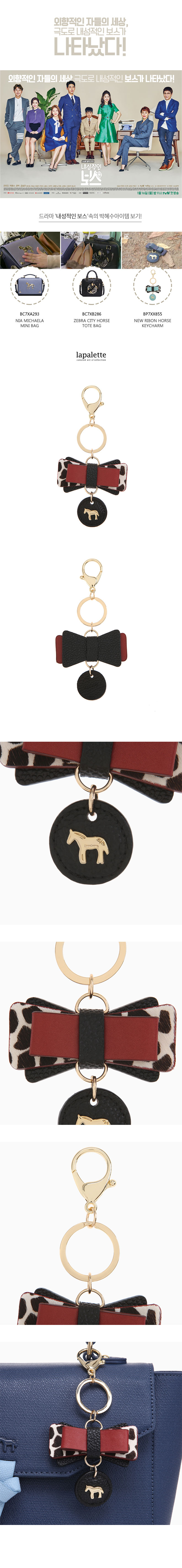 lapalette introduces renewal ribon horse charm with animal P.R.Inted fur leather. Animal fur leather combination with ribbon detail and lucky horse hardware made luxury design. Attach it to your keys or bags to bring little edge on your daily outfit.