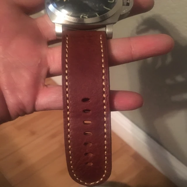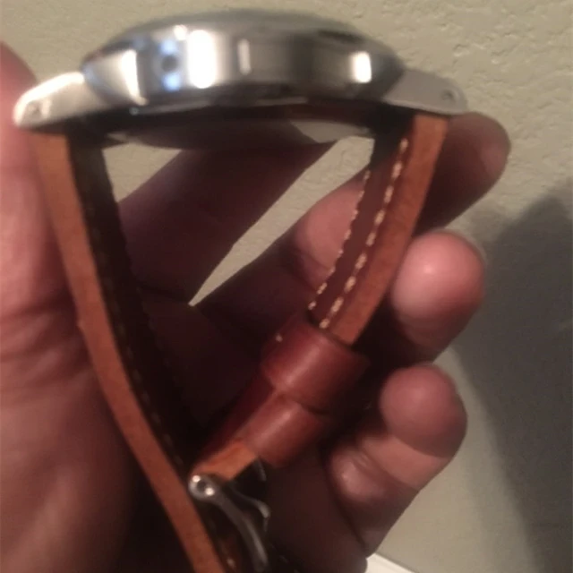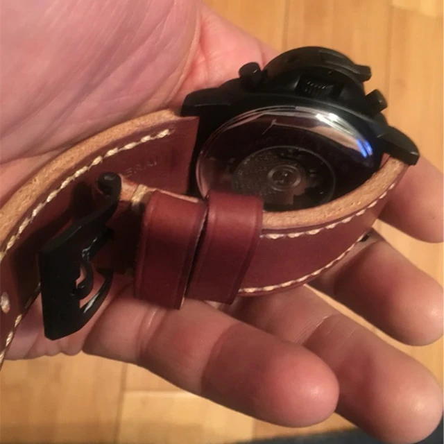 | [해외] 최고 품질 24 미리메터 26 미리메터 수제 정품 가죽 클래식 레드 브라운 부드러운 줄 팔찌 스트랩 PAM111/파네 로고 |