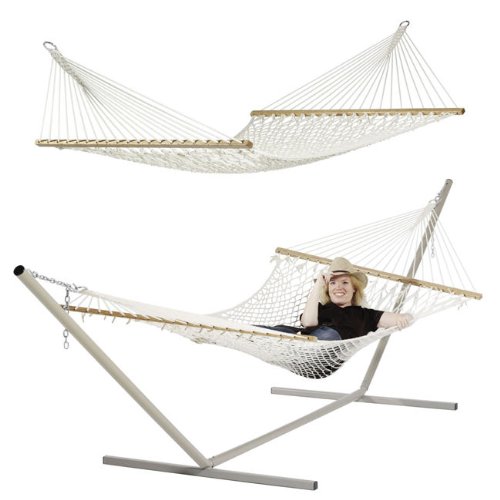 - Title : Comfy and Sturdy 59" Hammock Cotton Double Wide Solid Wood Spreader Outdoor Patio Yard Hammock