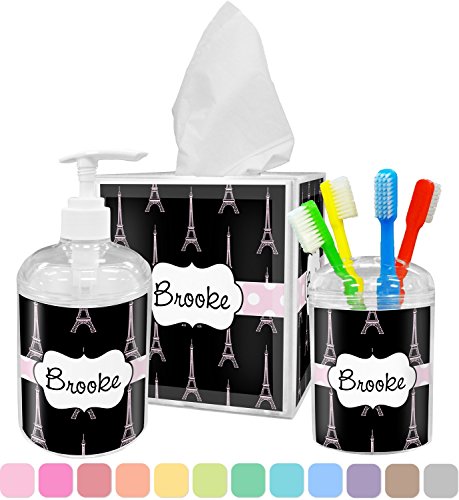 -. Brand : RNK Shops -. Color : Pink -. Feature : YOU WILL RECEIVE AN EMAIL WITH A LINK TO CUSTOMIZE YOUR ORDER WITHIN 1 BUSINESS DAY / Custom P.R.Inted with Your Design / 3 piece set / Inserts P.R.Inted on premium gloss media / Vibrant, colorful design -. Label : Mom Innovations -. Manufacturer : Mom Innovations -. MPN : mi-bath-acc-bundle+Black-Eiffel-Tower -. PartNumber : mi-bath-acc-bundle+Black-Eiffel-Tower -. ProductGroup : Home -. ProductTypeName : HOME_BED_AND_BATH -. Publisher : Mom Innovations -. Studio : Mom Innovations -. Title : Black Eiffel Tower Bathroom Accessories Set (Personalized)