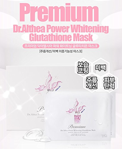 -. Binding : Misc. -. Brand : Dr Dry -. EAN : 0889810104746 -. Feature : Dr Althea Premium Power Whitening Glutathione Mask (5sheets) / Glutathione / Hyaluronic acid / Pearl Powder / Whitening + Anti Wrinkle + Moisturizing + Skin elastic effect / Glutathione : Whitening / brightening effect, it has anti oxidation power 100 times of vitamin -. Label : Dr Dry -. Manufacturer : Dr Dry -. MPN : na -. PackageQuantity : 1 -. PartNumber : na -. ProductGroup : Beauty -. ProductTypeName : BEAUTY -. Publisher : Dr Dry -. Studio : Dr Dry -. Title : Dr Althea Premium Power whitening Glutathione Mask (35g x 5pcs) pearl powder by Dr Dry -. UPC : 889810104746