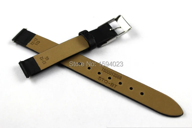 | [해외]12 미리메터 (Buckle12mm) T58 높은 품질 실버 버클 + 블랙 정품 가죽 시계 밴드 스트랩 여성 무료 배송 |
