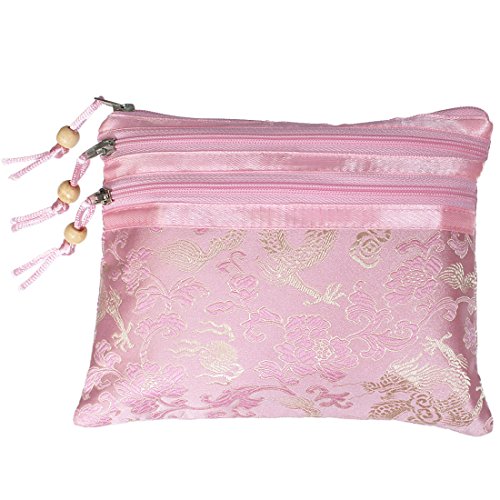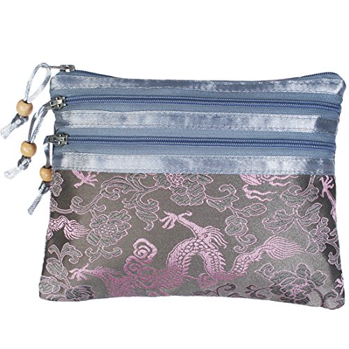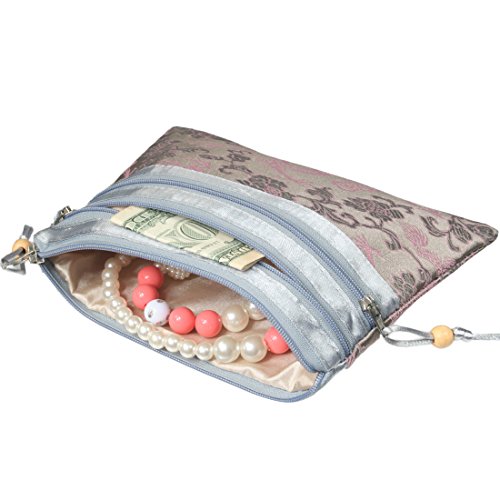 - Title : kilofly Chinese Silk Brocade 3 Zipper Pockets Jewelry Pouch Bag, Set of 2