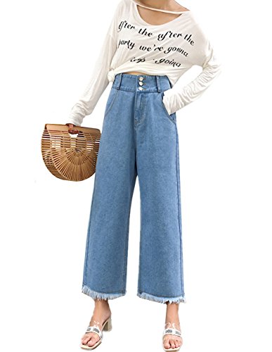 -. Title : レディース ワイドパンツ ボトムス デニム ガウチョパンツ ウォッシュ ヴィンテージ ロング丈 体型カバー 着痩せ ジーンズ 無地 美脚 Monissy