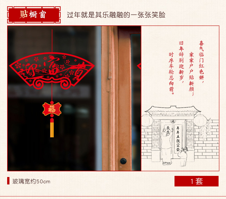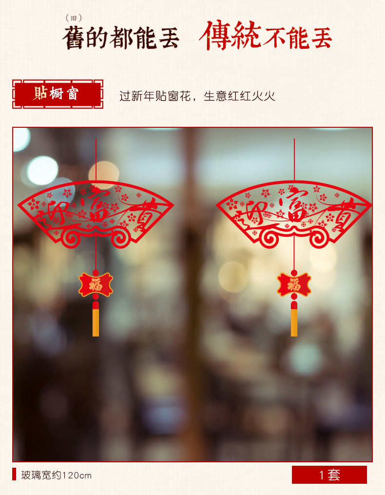 迎富贵新春新年贴纸新年装饰品贴画纸春节玻璃贴墙贴门贴新年快乐