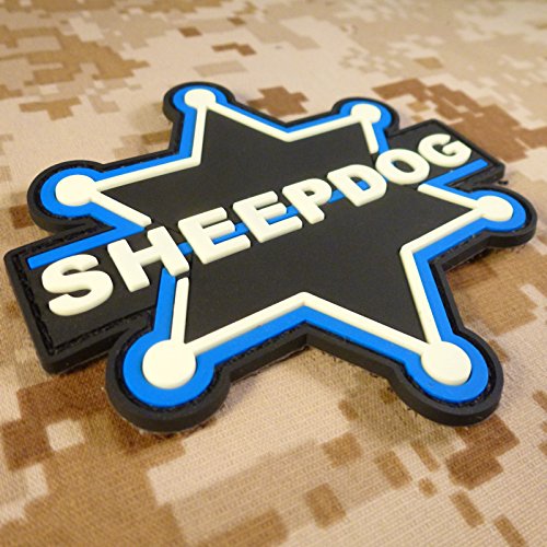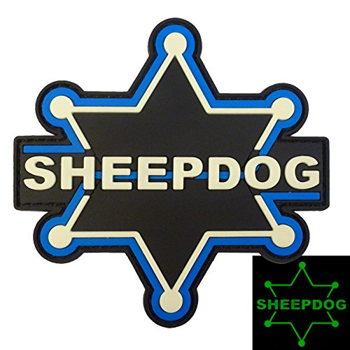 Glow Dark GITD 3D Sheepdog Thin Blue Line Sheriff PVC Rubber Fastener Patch