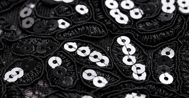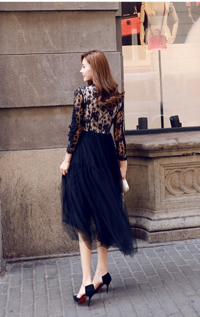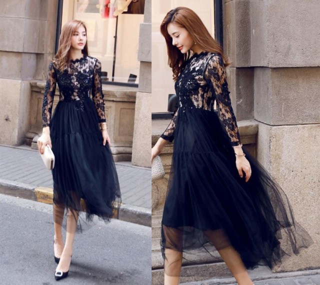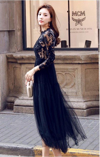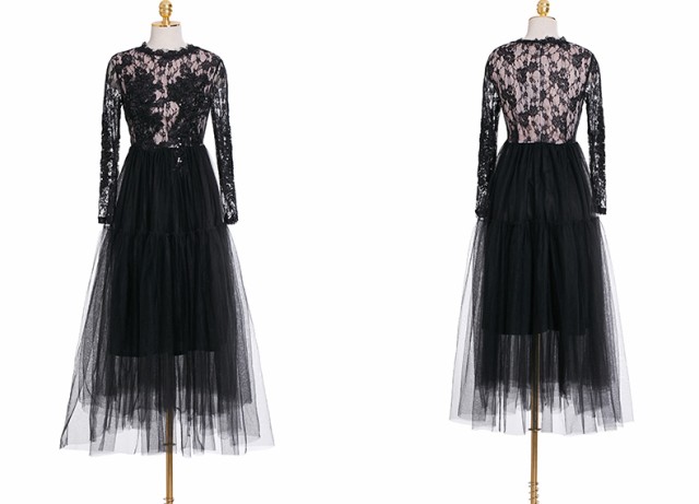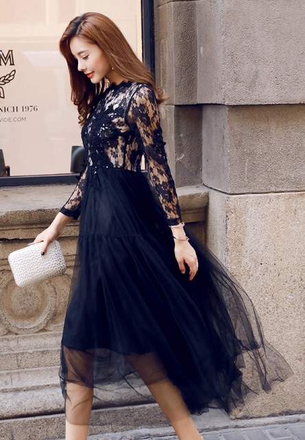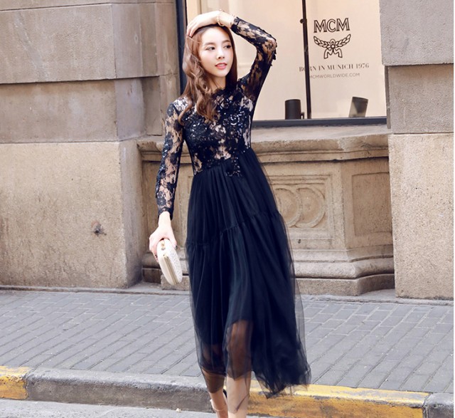 レースにスパンコールがあしらわれたゴージャスなワンピース。