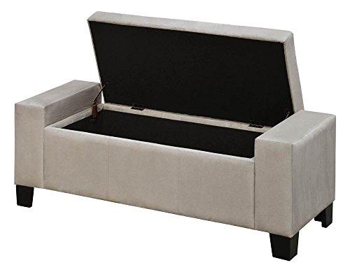 -. Feature : Tapered legs / Flip top that reveals storage area / Upholstered microfiber / Tufted / Weight capacity: 200 lbs.