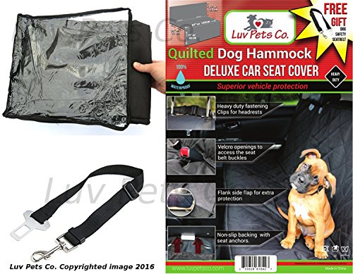 -. Title : Dog Seat Cover - Hammock - Pet Seats Covers For Cars, Trucks & SUV's - Heavy Duty & Waterproof with Side flaps & A Free Safety Seat Belt