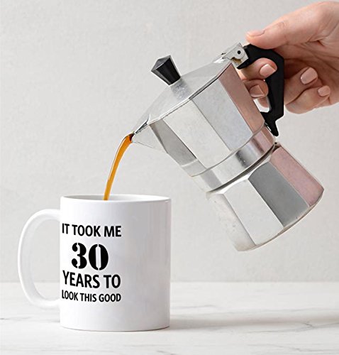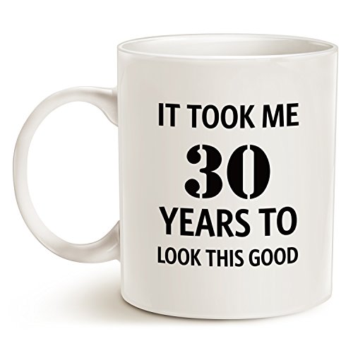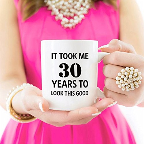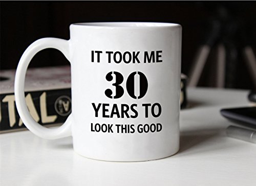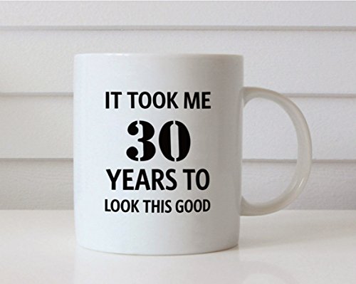 It took me 30 years to look this good birthday gag mug. Cute mug for 30th birthday gag men or women. Personalizable age number funny birthday gift idea for fifty year old. Surprise your over the hill dad, mom, uncle, aunt, brother, sister, husband, wife, grandpa, grandma etc. Age specific humor for 30 year old. Fiftieth Bday celebration.