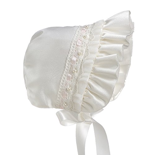 Binding : Apparel Product Description A bonnet is any of a wide variety of headgear for both sexes-most often female-from the Middle Ages to the present.As worn by women and girls,bonnets were hats worn outdoors which were secured by tying under the chin, and often which had some kind of peak or visor,took the place of protection from sun,prevent wind-chapping,hold the hair in place, protect styled hair or keep it tidy,the term has long been popular in both civilian life and in the Royal Regiment . Baby Bonnets are a time old tradition that carries into present day because of their elegance and functionality. They're offered in small to large sizes then tie at the chin with two silk ribbons for a more secure and comfortable fit. Carry the tradition in your family with a bonnet from Hanakimi you can't find anywhere else. For parties and photos, choose from baby girl bonnets for the perfect accessory to accent wisps and curls. Lace, netting, beads and bows add just the right touch to these handmade bonnets. XXS/Newborn Fit for 0-3 Months, XS/3M Fit for 3-6 Months, S/6M Fit for 6-12 Months, M/12M Fit for 12-24 Months, L/24M Fit for 24-36 Months, XL/36M Fit for 36-48 Months. 0