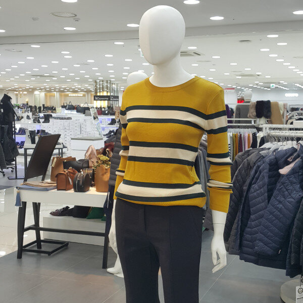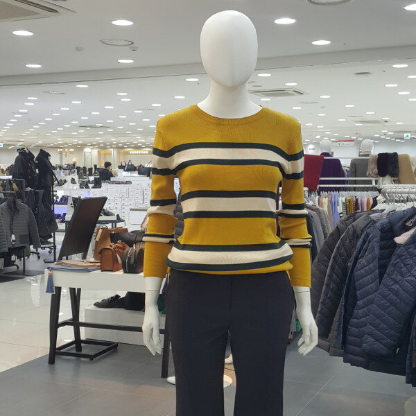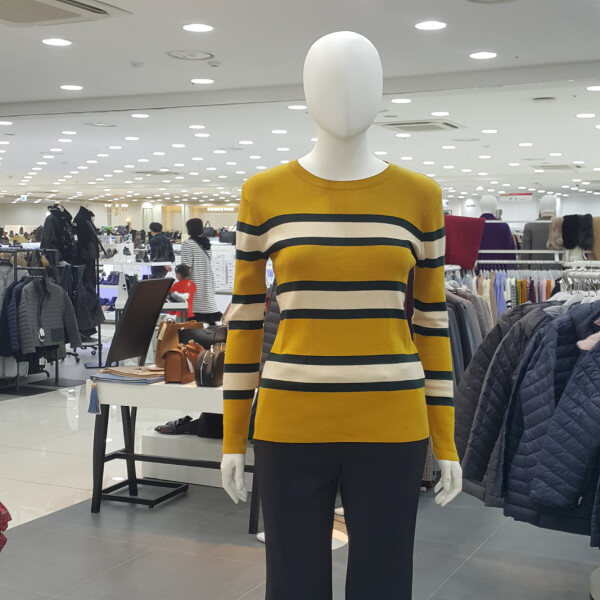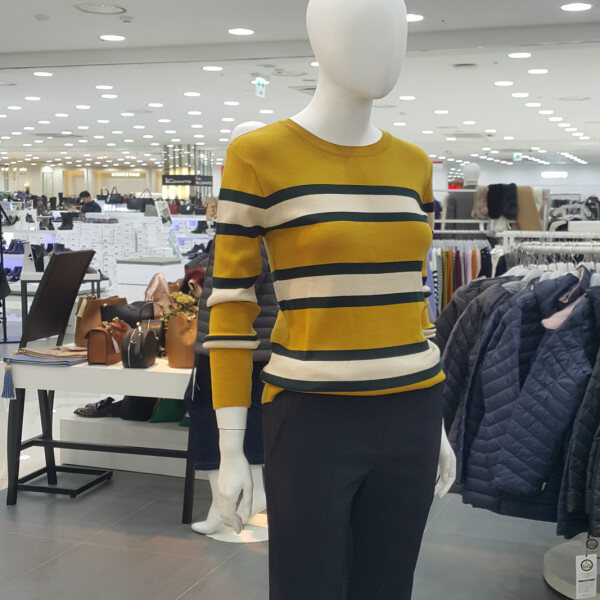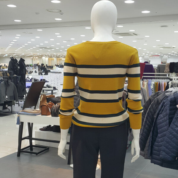 기본라운드형에배색스트라이프가포인트되는니트티셔츠입니다