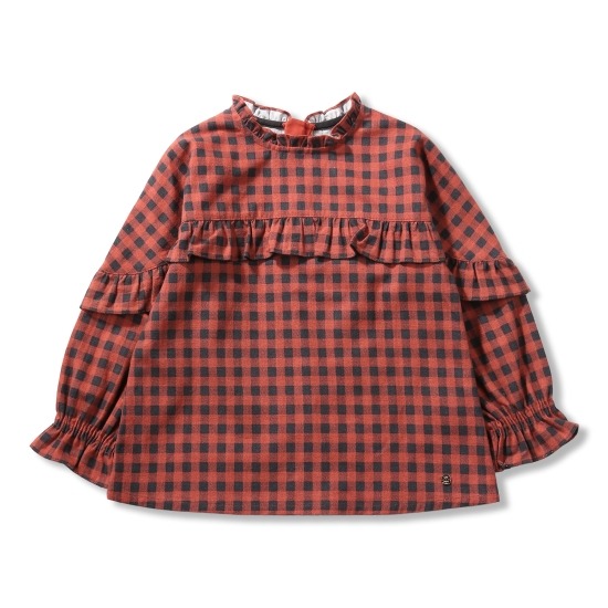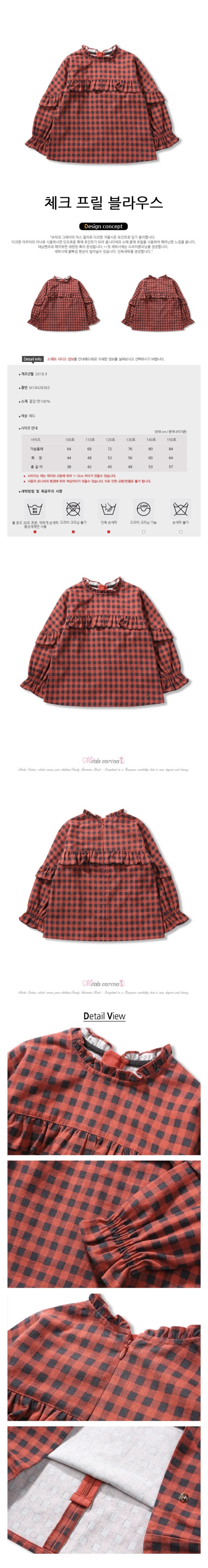 체크모양의 목라인과 앞라인에 프릴이있어 귀엽고 겨울이랑 잘어울리는 색상에 따뜻함까지 모든옷에 잘어리는 블라우스입니다.