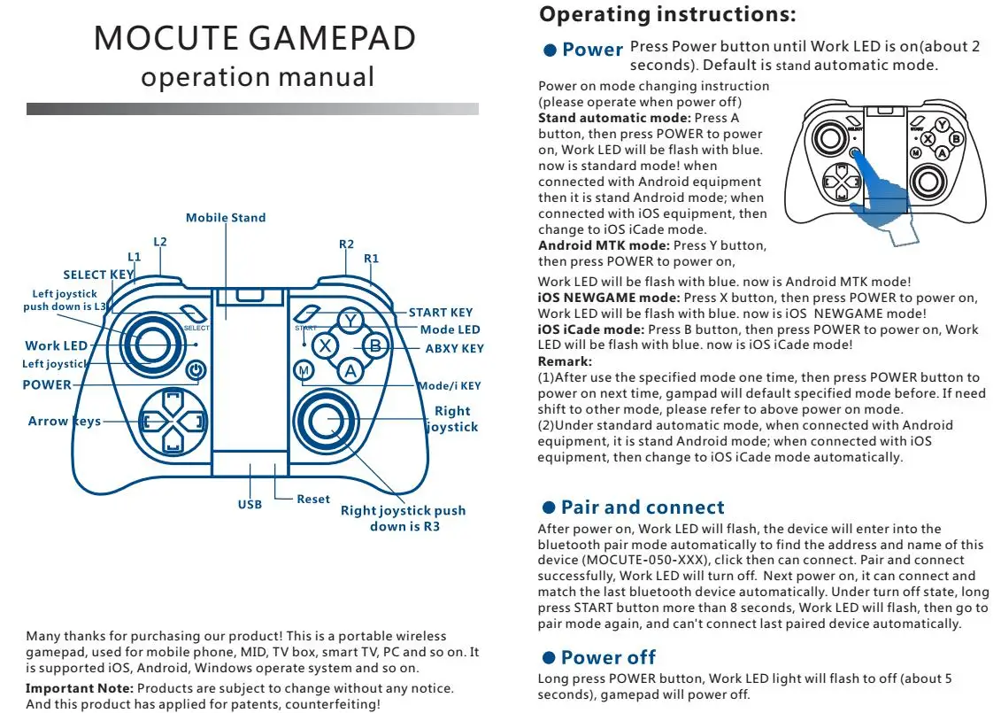 Model Number:050 VR Joystick Remote Control