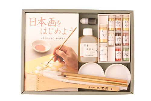 -. Feature : 日本画入門セット / セット内容 絵具(10色)/下絵(2種)/念紙/絵刷毛/面相筆(大)(小)/彩色筆/絵皿(4枚)/骨描き墨汁/麻紙ボード胡粉引き(SMサイズ2枚)/透膠液/描き方手順書 / 初心者の方でも手順書に沿って楽しくぬり絵のように描いていただくだけで、部屋に飾れるような作品が出来上がります。 / サムホールサイズ(22.7×15.8㎝)の作品を2点制作できます。