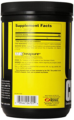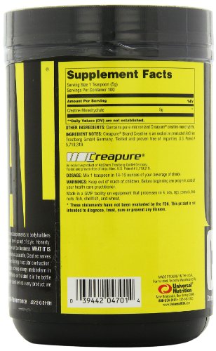 THE FINEST AND MOST READILY ABSORBED CREATINE AVAILABLE: German creatine that is patented and proven to the best in the world. Creatine is one of the most researched supplements in the world, and Universal Nutrition's Creapure® Creatine Monohydrate powder passes the test and sets the industry standard.