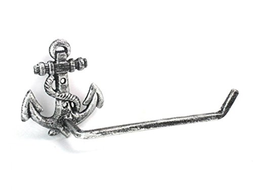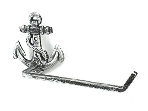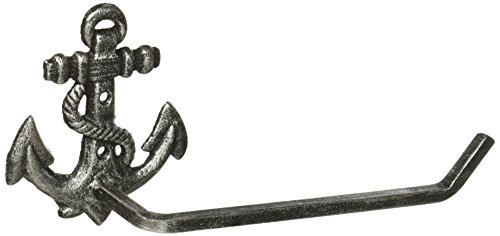 Hampton Nautical K-9210-silver Antique Silver Cast Iron Anchor Toilet Paper Holder 10" - Beach Bathroom Decoration - Beach Home Decorating