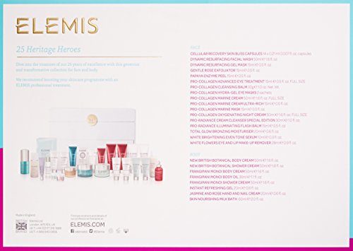 Dive into the treasures of our 25-years of excellence with this generous and transformative collection for face and body. Packaging: luxury vanity case with a crash lock boxpro-collagen cleansing balm 1oz, pro-collagen marine cream 1.6oz, full size pro-collagen oxygenating night cream 1.6oz, full size pro-collagen advanced eye treatment 0.5oz, full size pro-collagen marine mask 0.5oz, pro-collagen marine cream ultra-rich 0.5oz, pro-collagen hydra-gel eye mask x 2, pro-radiance cream cleanser 1oz, tubepro-radiance illuminating flash balm 0.5oz, papaya enzyme peel 0.5oz, gentle rose exfoliator 0.5oz, total glow bronzing moisturizer 0.6oz, white flowers eye and lip makeup remover 0.9oz, cellular recovery skin bliss capsules 7 x rose 7 x lavender dynamic resurfacing facial wash 1.6oz, dynamic resurfacing gel mask 0.5oz, white brightening even tone serum 0.3oz, frangipani monoi body oil 1.1oz, frangipani monoi shower cream 1.6oz, frangipani monoi body cream 1.6oz, jasmine and rose hand cream 0.6oz, instant refreshing gel 0.6oz skin nourishing milk bath 2oz, British botanical shower cream 1.6oz, British botanical body cream 1.6oz.Feature