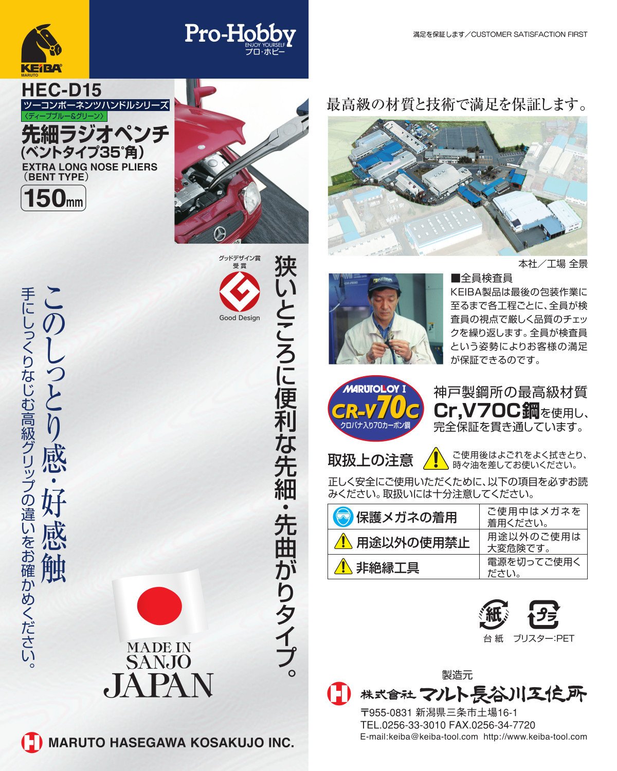● Product Size ● Width 50 × height 148 × depth 15 mm Weight 75 g ● Item Code: 4962537344810 ● JAN Code: 4962537344810 ● Brand Name: Keiba ● Product Name: Prof Hobby Tapering Radio Pliers ● Standard: HEC-D15 ● Manufacturer directly