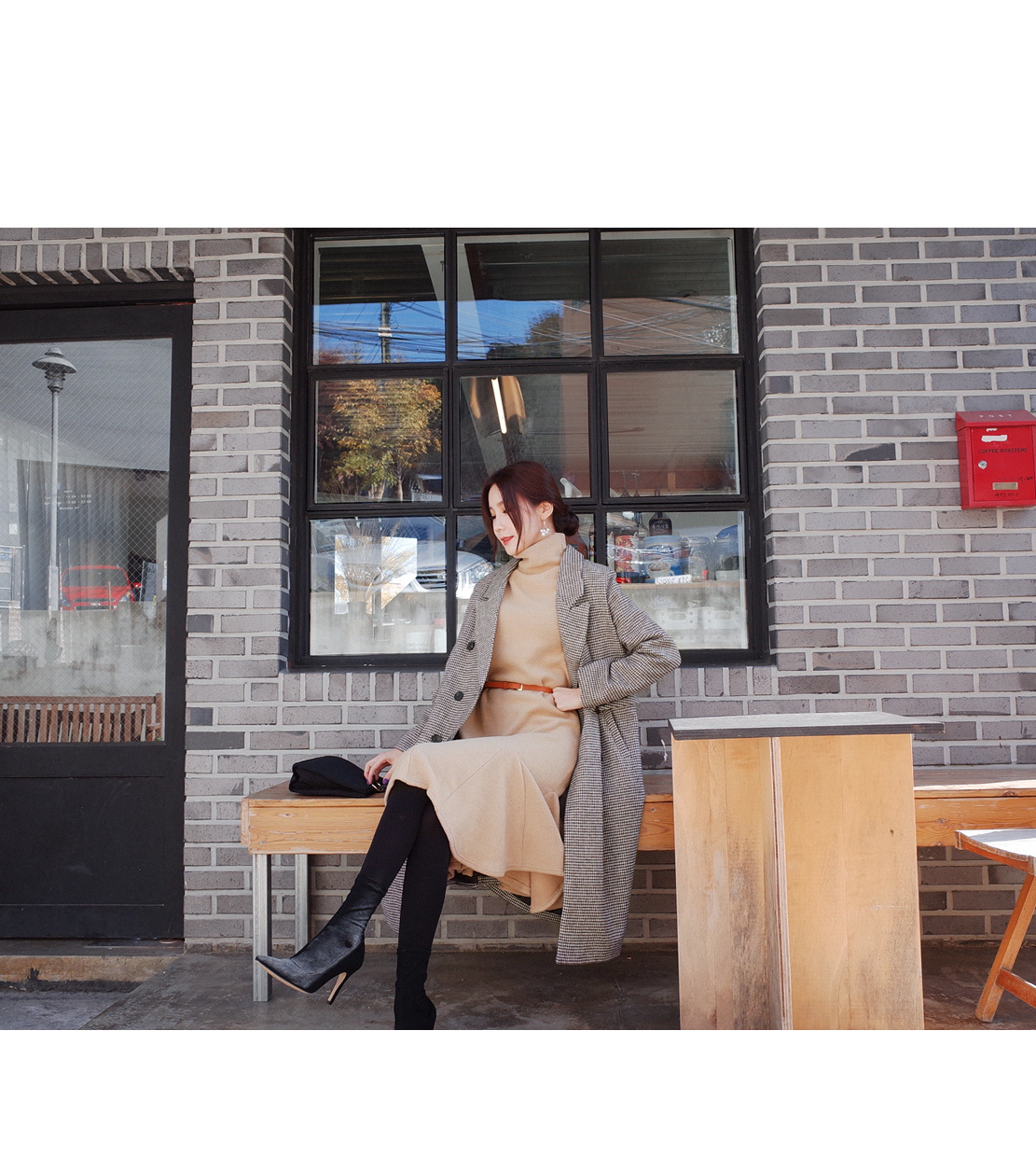 모델이 피팅한컬러는 브라운 컬러입니다