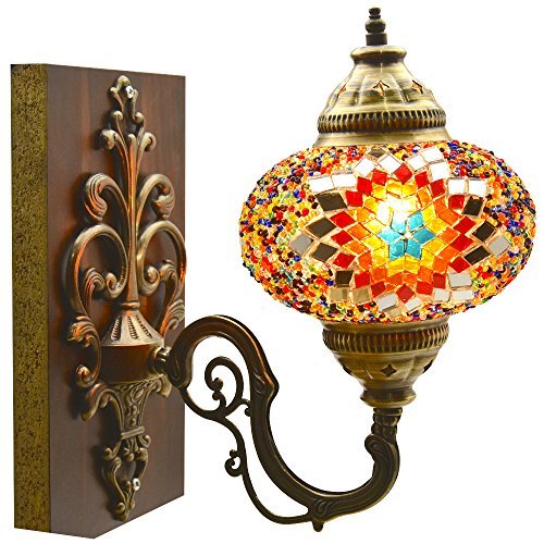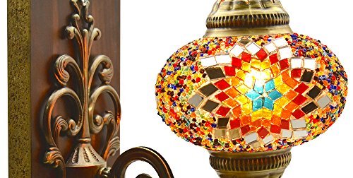 (LamodaHome)/Furniture Decor/Home Decor/DIRECT FROM USA/Turkish Moroccan Mosaic Tiffany Glass and Metal Wall Light Sconce (Fire)