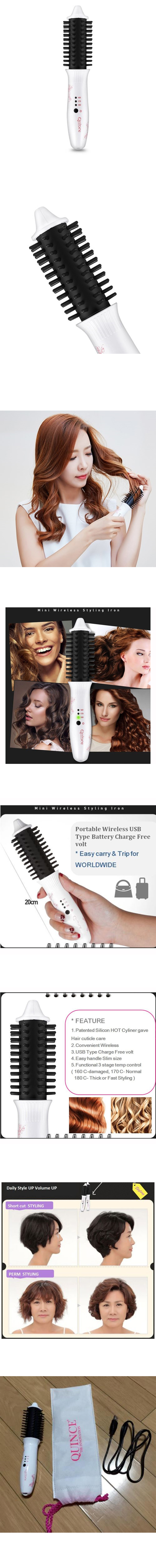 Quince Portable Wireless Hair volume styler BB 07A Patented Silicon Cylinder brush type Hair iron for Volume Up