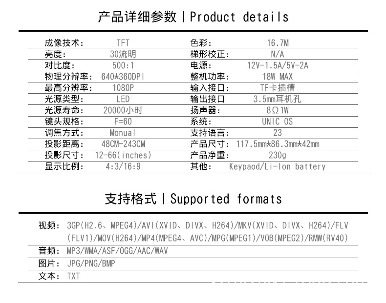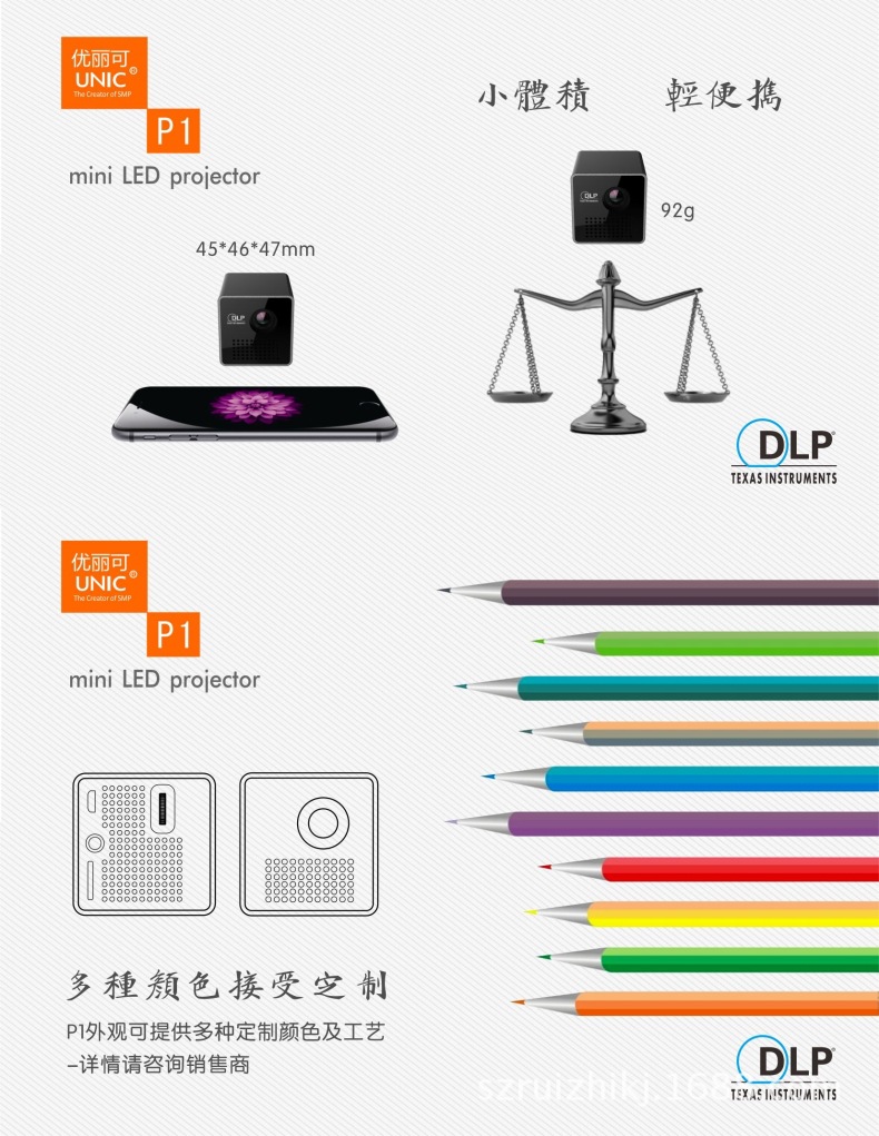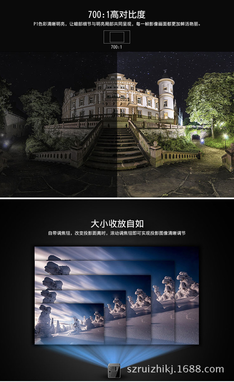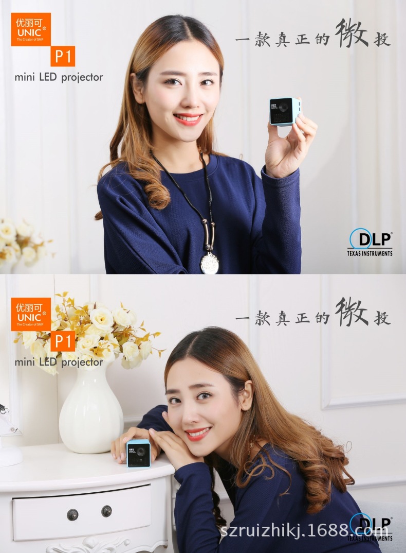 新款P1+家用投影仪便携迷你投影机DLP技术手机WiFi无线连接投影
