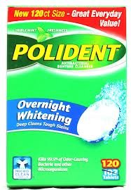 -. Binding : Health and Beauty -. Brand : Polident -. EAN : 0639112742166 -. Feature : BUNDLE: One box Polident Overnight Whitening Denture Cleanser Triplemint 120 Tablets and One box Super Poligrip Zinc Free Denture Adhesive Cream, 2.4-ounce Tubes / POLIDENT OVERNIGHT Whitening Denture Cleanser : This is an an antibacterial Denture / False Teeth cleanser with triple mint freshness. This cleanser Kills 99.9 of odor-causing bacteria and clears tough stains. Cleaning with Polident Cleanser gives you CLEANER, FRESHER and BRIGHTER denture / fake teeth / SUPER POLIGRIP ADHESIVE CREAM : This newly improved Denture / False Teeth is free of artificial flavors and colors and will hold dentures tight hour after hour. The denture adhesive cream forms a seal to help keep food from getting stuck in between your dentures / fake teeth and gums. Package comes in newly improved hold and ooze control tips. / ENJOY YOUR FOOD more by using Super Poligrip adhesive cream that will helps you in holding partial denture, false teeth together for a better bite. / CLEANSE your denture daily with Polident Ovenight denture cleanser to keep your upper lower denture CLEAN FRESH AND BRIGHTER. This will promote HEALTHIER GUMS. -. IsAdultProduct : 0 -. Label : Polident -. Manufacturer : Polident -. PackageQuantity : 2 -. ProductGroup : Health and Beauty -. ProductTypeName : HEALTH_PERSONAL_CARE -. Publisher : Polident -. Studio : Polident -. Title : Polident Denture Cleaner Overnight Whitening with Triple-mint 120 Tablets and Poligrip Denture Adhesive Cream Zinc Free -. UPC : 639112742166