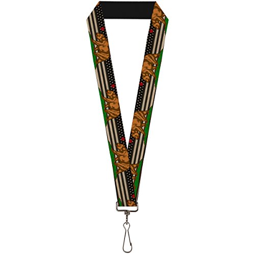 -. Binding : Apparel -. Brand : Buckle Down -. Department : unisex-adult -. Feature : This lanyard is made out of stretchy nylon, and has a stainless steel clip to easily detach your keys / Show off your favorite style / The lanyard is 1.0 inches wide, and a standard length -. Label : Buckle-Down -. Manufacturer : Buckle-Down -. MPN : LY-1.0-W35546 -. NumberOfItems : 1 -. PackageQuantity : 1 -. PartNumber : LY-1.0-W35546 -. ProductGroup : Apparel -. ProductTypeName : ACCESSORY -. Publisher : Buckle-Down -. Studio : Buckle-Down -. Title : Buckle-Down Lanyard - 1.0" - Cali Bear/star/us Flag Stretch Black/white/ Accessory
