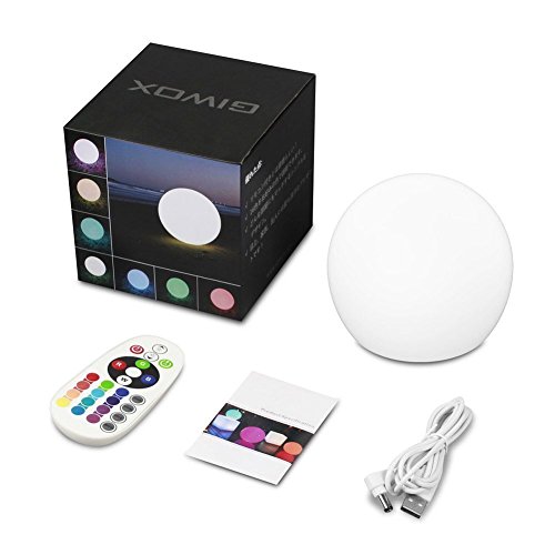 GIWOX 4.7" Rechargeable LED Ball Light, Dimmable Children's Bedroom Lamps Night Indoor Mood Lighting with Remote - 16 Colors, 4 Dynamic Models Indoors Outdoor