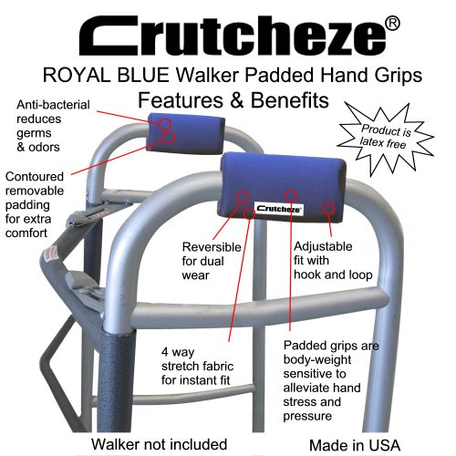 Crutcheze Royal Blue Walker Padded Hand Grip Covers Made in USA...