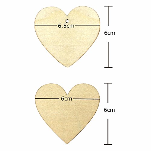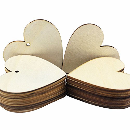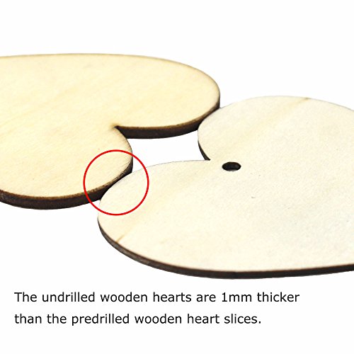 CEWOR 100pcs 2.4" Wooden Heart Slices Wood Heart Embellishments for Wedding Crafts Art Making (50 Predrilled and 50 Undrilled)