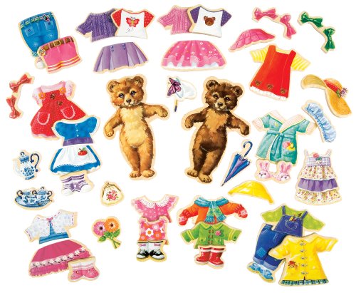 - Feature : Includes 2 magnetic wooden bears, 41 sturdy magnetic clothing pieces, and vinyl carrying case / Beautifully illustrated with hand-painted artwork / Set comes in a convenient carrying case with snap pockets / Great for travel / For ages 3 years and up
