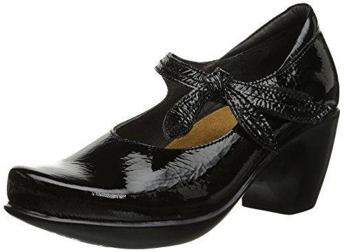 The pleasure is a maryjane that can take you straight from day to night this style has a hook and loop strap at the instep padded heel cup and a removable decorative bow