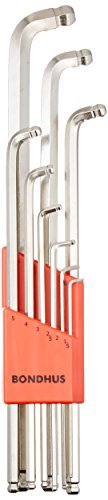 Bondhus 77099 Stubby Double Ball End L-Wrench Set with BriteGuard Finish and Extra Long Arm, 9 Piece